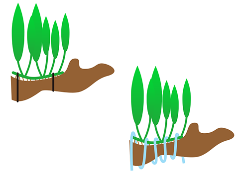 この時きつく巻き付けすぎると根茎を傷めてしまいますので、注意してください。