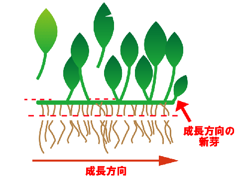 水面まで葉が伸びると水上葉を展開するので、アクアテラリウムなどでよく使われます。
