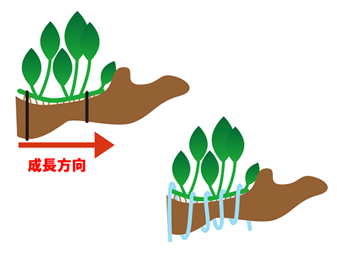 この時きつく巻き付けすぎると根茎を傷めてしまいますので、注意してください。
