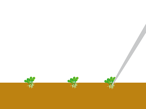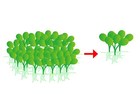 厚みが出てきたり、重なっているところは根の部分を残して葉の部分をカットして間引きをしましょう。